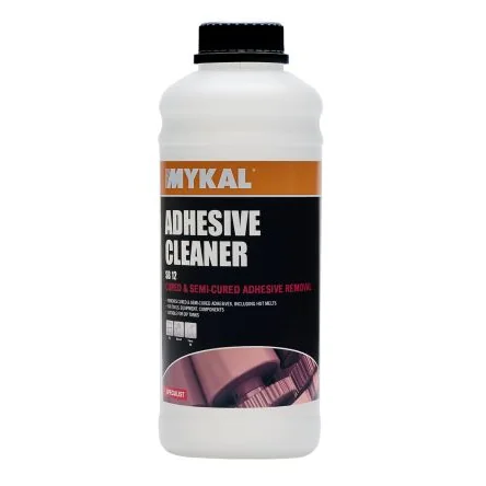 Adhesive Remover. The special blend solvent adhesive cleaner from Mykal has been designed to remove both cured and semi-cured adhesives easily. You can easily remove hot melts from your tools, equipment and components. Features and Benefits. Can be used in dip tanks or ultrasonic systems Low vapour pressure meaning it does not evaporate quickly No aromatic or chlorinated hydrocarbons. Typical Applications. Use for removing cured or semi-cured adhesives from tool and equipment, floors and machinery. You can also use in dip tanks and ultrasonic cleaning processes.