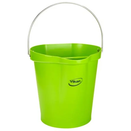 This award-winning bucket is ideal for transporting cleaning chemicals and both hot and cold ingredients. It has a drip-free spout, a hand grip that is raised from the base, and a sturdy stainless steel handle. It is also calibrated for a variety of measuring units. The flat side prevents spillage and the bucket has its own wall bracket, 16200, for storage.