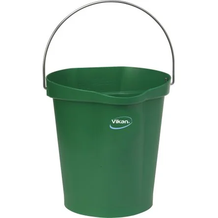 Durable 12L plastic bucket with stainless steel handle, perfect for cleaning and food transport.