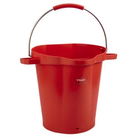 This durable 6 litres bucket is suitable for cleaning or storage of ingredients and food stuff. The bucket has a wide drip-free spout, sturdy stainless steel hanger, hand grip at the bottom that is raised from the base and calibrated for a variety of measuring units. The flat side prevents spillage and it has its own wall bracket, 16200 for storage.