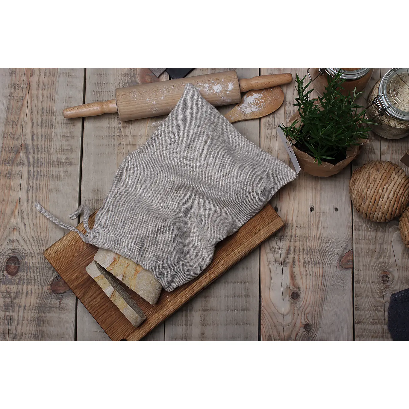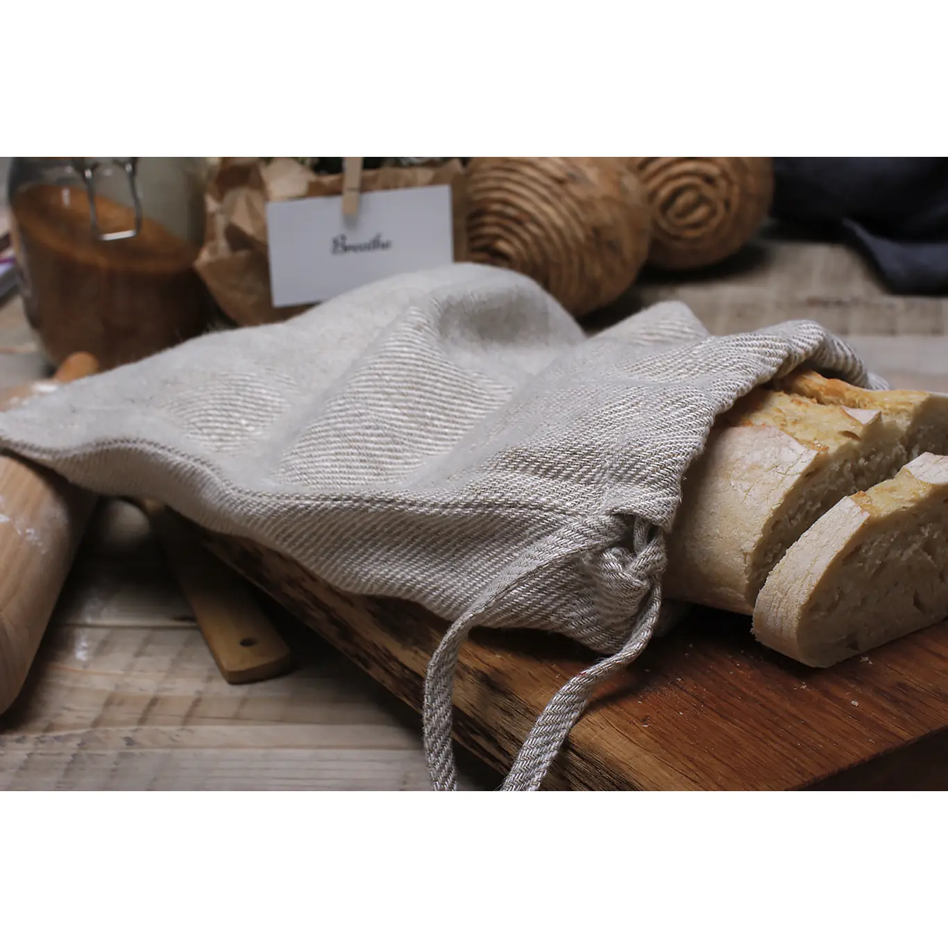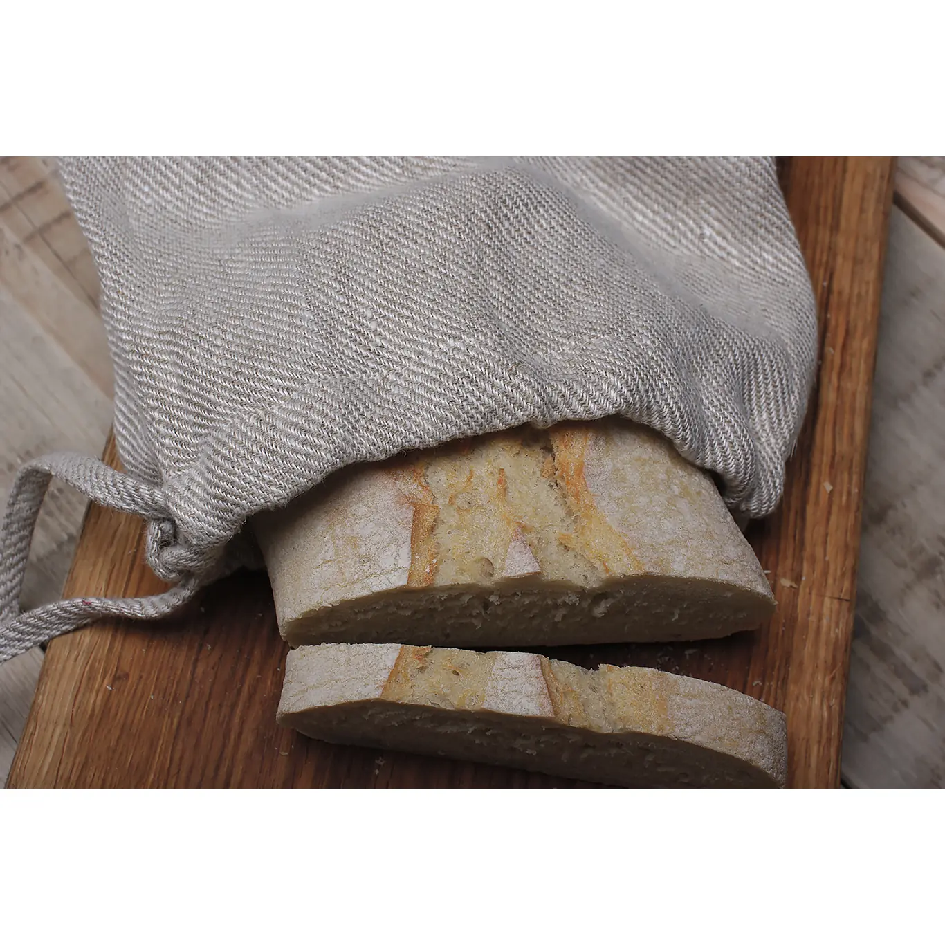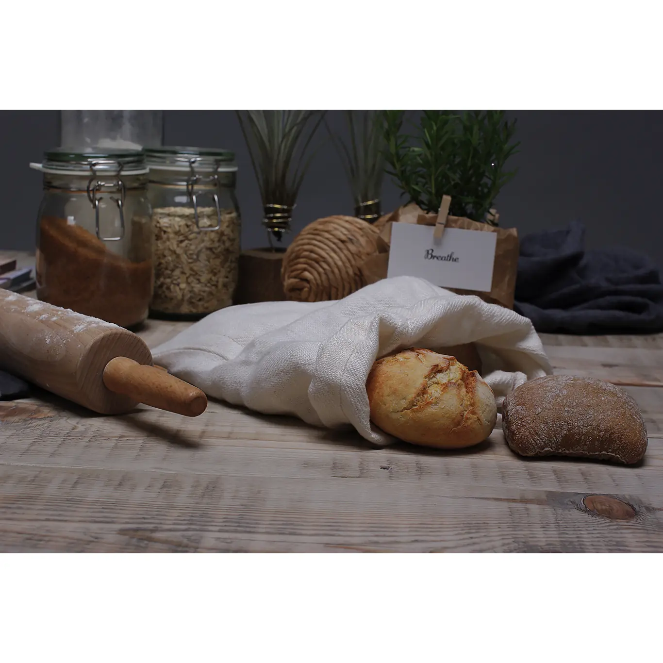 This reusable linen bag is perfect for storing various bread goods while keeping them fresh.