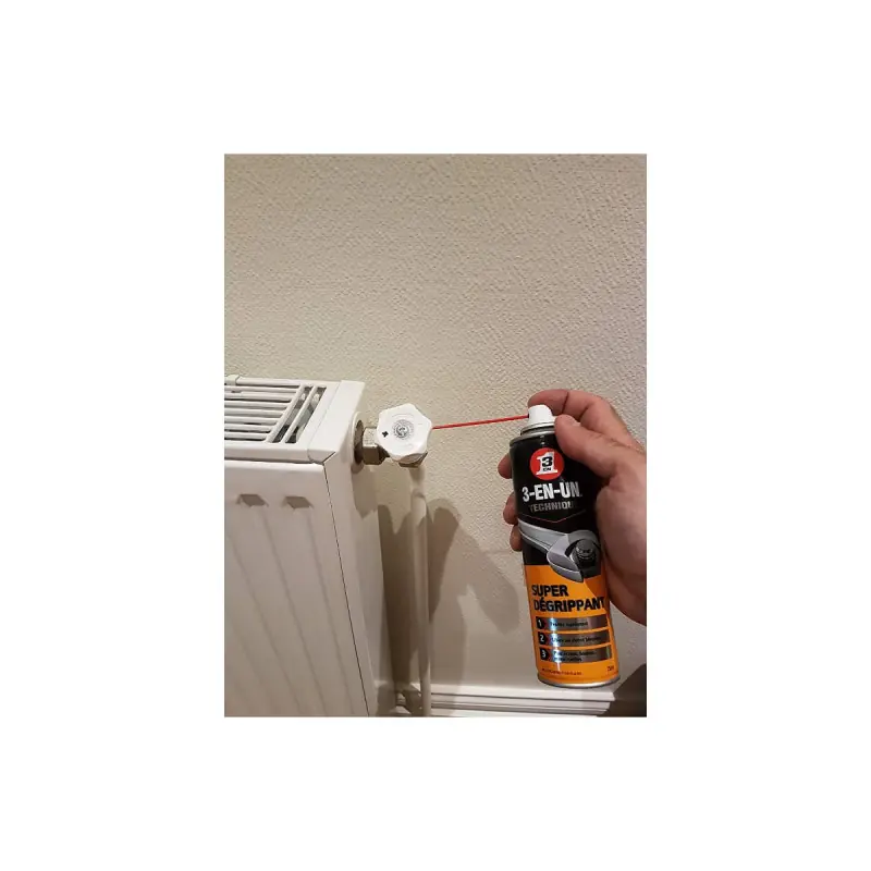 After 20 months of research by the WD-40 laboratory in the United States, the 3-IN-ONE Super Penetrant offers a high penetrating power that is very effective for reaching the most inaccessible parts. With its quick action, the formula of the super penetrant is suitable for industrial use and frees mechanisms from rust, dirt, and other deposits.