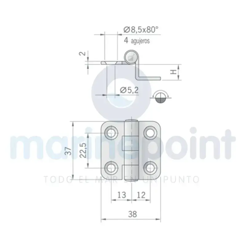 304 STAINLESS HINGE, ASYMMETRICAL, with NORMAL AXIS, 38 x 37mm