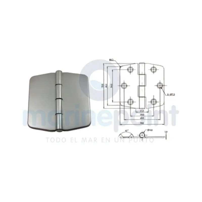 The 316 stainless steel covered hinge of 75x74 mm offers a premium solution for boats, combining maximum corrosion resistance with a flawless aesthetic. It includes a cover that hides fixing screws, delivering a professional finish in any installation.