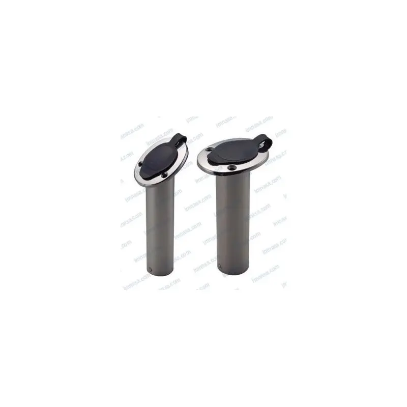 The AISI 316 stainless steel rod holder with a 90-degree angle is essential for sport fishing enthusiasts on boats. Its robust design guarantees optimal corrosion resistance in marine environments, allowing prolonged use without deterioration. It features a white cap that protects the rods and enhances the deck's aesthetics.