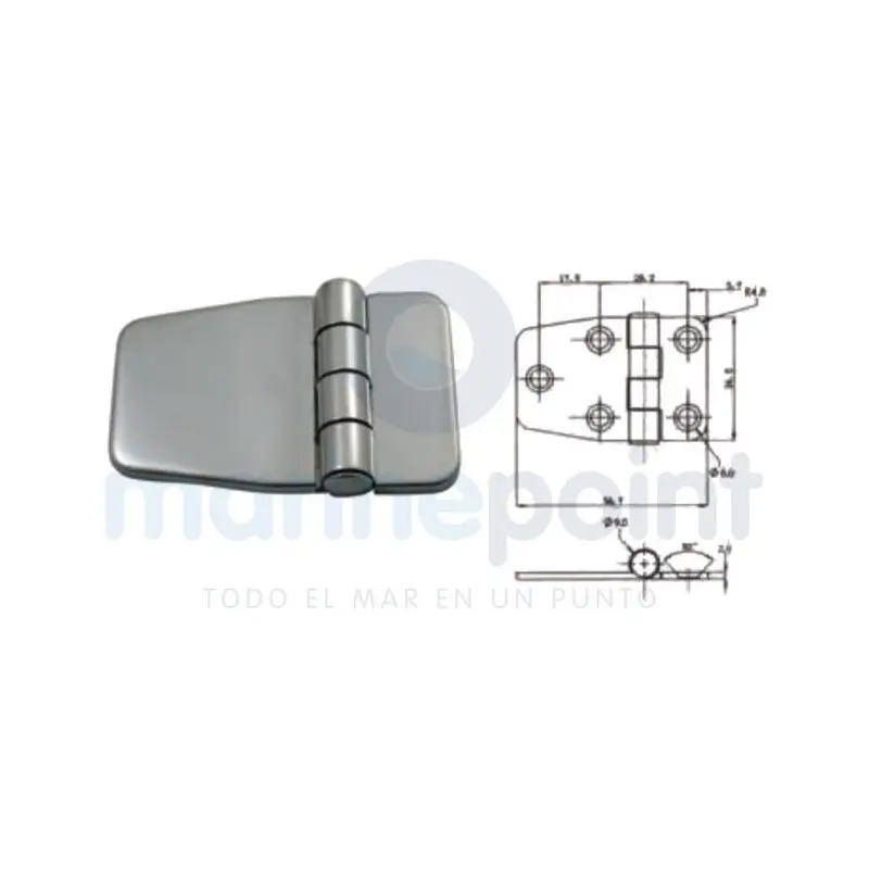 This 316 stainless steel hinge measures 37x56 mm and includes a practical cover to protect screws, providing an aesthetic and professional finish to any marine installation.
