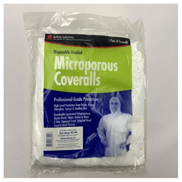 This Buffalo disposable overall offers superior protection against dust, splashes of liquids, and other small particles. Ideal for various tasks in construction, industry, cleaning, or painting.