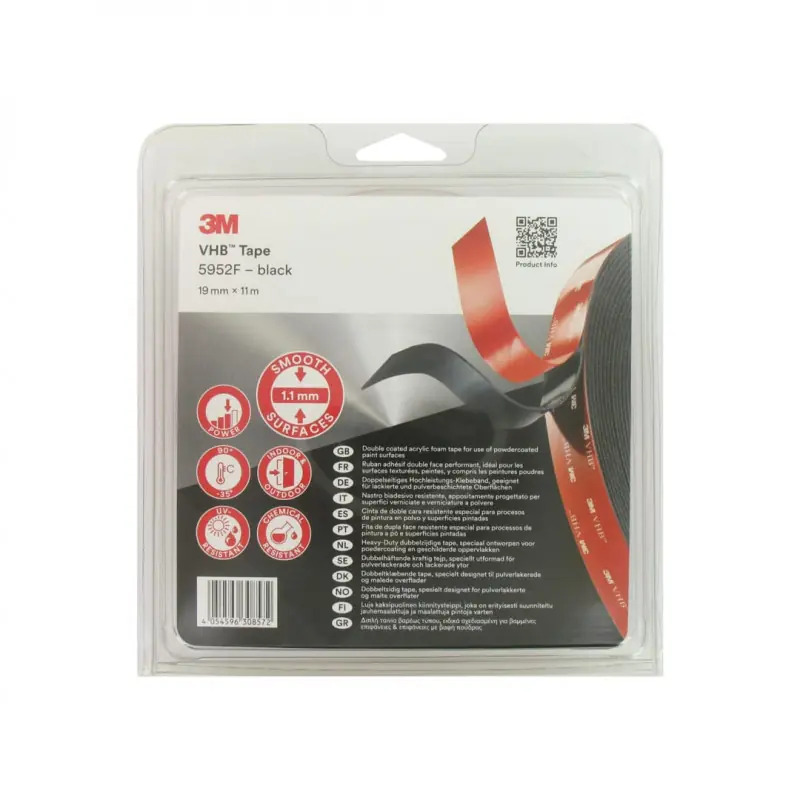 3M VHB 595F Double-Sided Adhesive - 19 mm x 11 m - Black is ideal for bonding a wide variety of surfaces together without the need for a primer. This high-performance tape is resistant to solvents as well as UV for a longer lifespan.