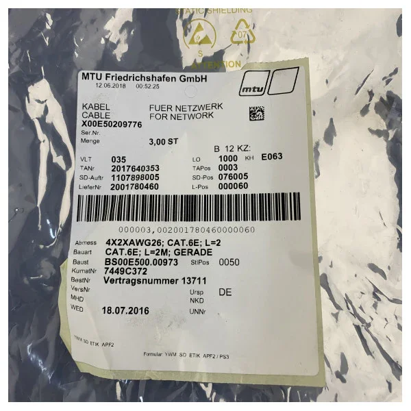 Optimize the reliability and communication of your MTU engine with this set of three original MTU X00E50209776 network connection cables. These cables are essential for stable and accurate data transfer within the engine management and control systems of your MTU drive. They guarantee a perfect fit and optimal functionality as specified by the manufacturer.