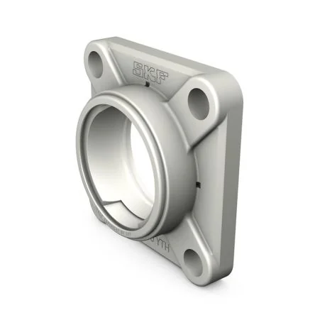 Durable SKF Flange Bearing Unit with a 100mm inside diameter and 4 mount holes.