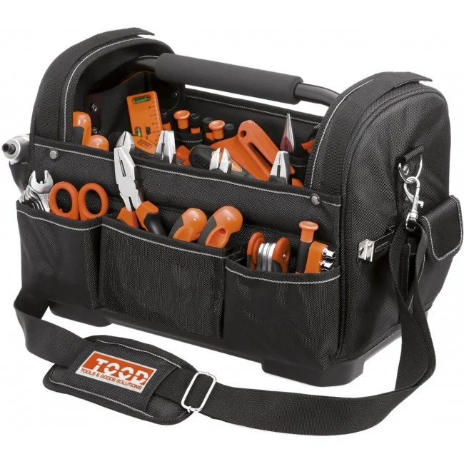 - The product is designed to provide organized storage for tools, featuring a rigid bottom and metal handle for enhanced durability.