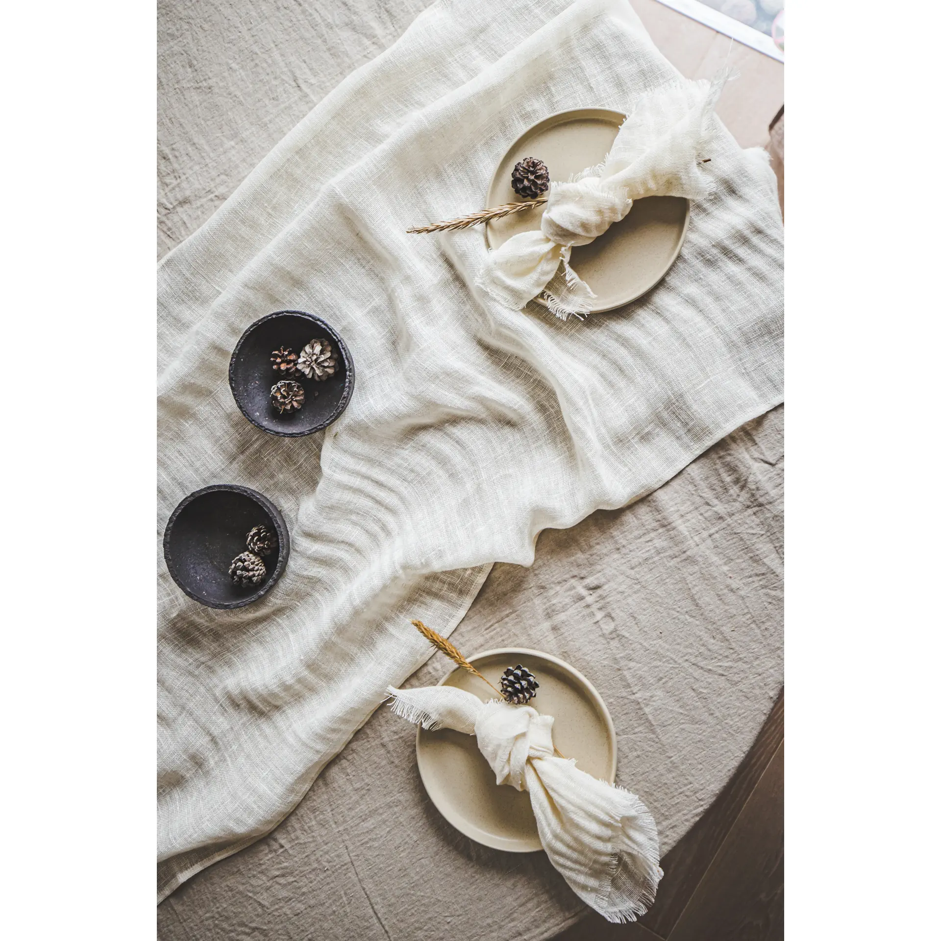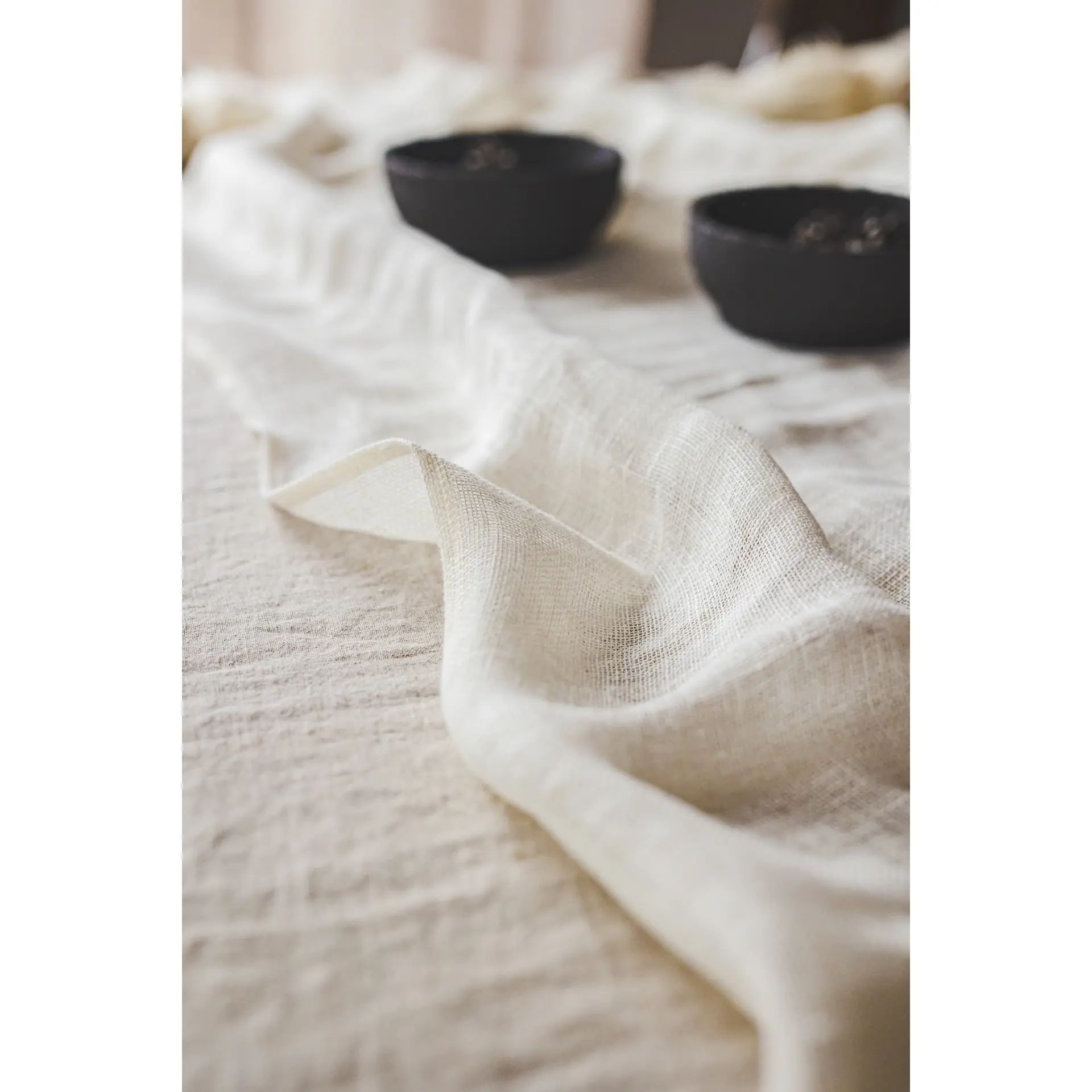 65x180cm, Gauze Linen Table Runner in Semi White Color