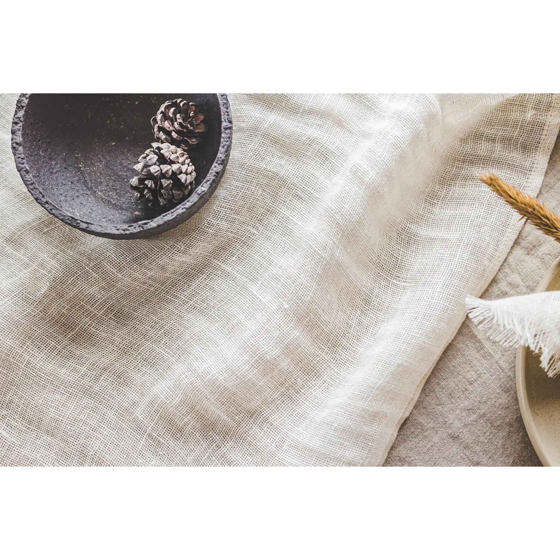 65x300cm, Gauze Linen Table Runner in Semi White Color