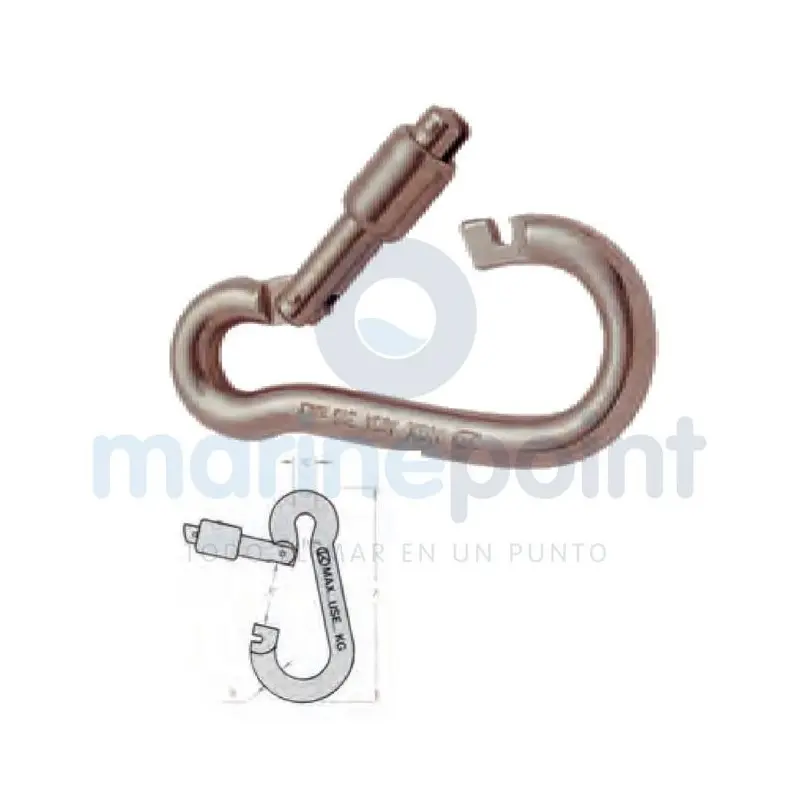8 mm carabiner made of durable AISI-316 stainless steel, ideal for deck work and quick connections in marine environments. It features a locking system that provides protection against accidental openings.