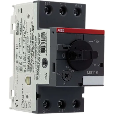 Protect your motors with ABB's reliable 6.3A circuit breaker, designed for overload and short circuit protection.