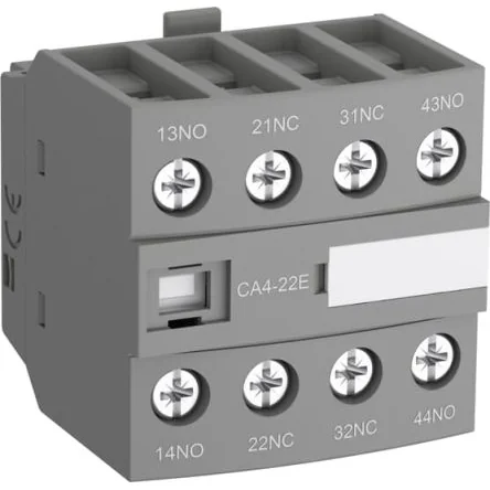 This ABB Auxiliary Contact Block has 4 contacts with a 4NO configuration and is designed for DIN mounting.