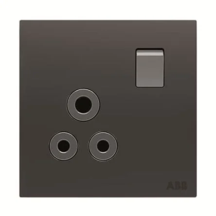 ABB Black 1 Gang Plug Socket, 2 Poles, 5A - 2CLA623759N1501 AM22186-SB