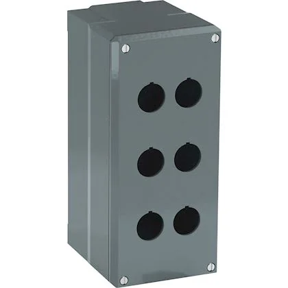 Durable grey aluminium enclosure designed for modular push button control stations.