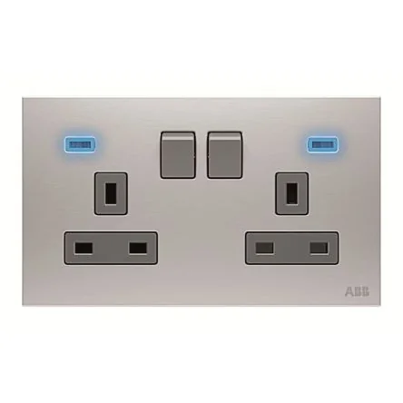 ABB Light Grey 2 Gang Plug Socket, 2 Poles, 13A, BS, Outdoor Use - 2CLA643729N1101