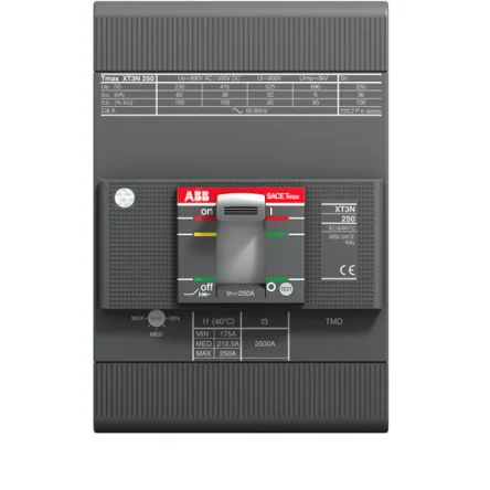 ABB, SACE Tmax XT MCCB Molded Case Circuit Breaker 3P 250A, Fixed Mount - 1SDA068221R1 XT3S 250 TMD 250A FF