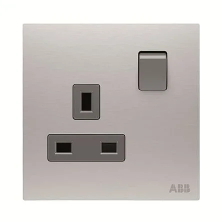 Reliable ABB silver electrical socket with 2 poles and 13A capacity for safe power connections.