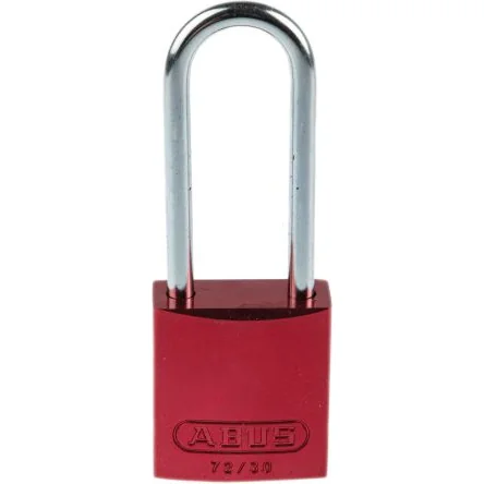 ABUS PadlockThe ABUS red, all-weather safety padlock has a body width of 32.2mm, shackle length of 50mm and shackle diameter of 4.4mm. The body is made from a solid aluminium body with steel shackles and NANO PROTECT plating that makes the lock corrosion resistant. The lock has low weight and reduced size, that makes it ideal for confined or hard-to-reach spaces.Features and Benefits5-pin precision cylinder Key-retaining (lock retains key until locked) Cylinder can be rekeyed to match an existing key Key-retaining (lock retains key until locked) Keyed alike