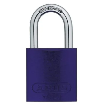 72/40 Lilac KA TT03145The ABUS 72 series lilac aluminium lock has a body width of 38.5mm and a hardened steel shackle of 6mm. The body is made of solid anodized aluminium and the shackle is made of hardened steel with NANO PROTECT coating. These anodised aluminium padlocks are keyed alike and ideal for access lock-off with 801 shackles, also ideal for Doors, gates, cabinets, lockers, toolboxes, cellar windows, sheds, switchgears, barriers.Double bolt locking mechanism 6-pin precision cylinder for maximum number of key differs Cylinder can be rekeyed to match an existing key Individualized by highly visible and durable laser engraving Automatic locking for best usability combined with key retaining function for higher safety Temperature range: -20°C to 175°C Self locking: locks without key by pushing down the shackle