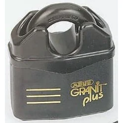 Granit Plus. Close shackle padlock protects shackle against attacks Constructed from a solid block of hardened special steel alloy which is resistant to sawing, levering, hammering and twisting Through hardened shackle for maximum strength with black cataphoretic protection Double ball bearing locking ensures high tensile and torsion strength Supplied with LED torch key in addition to normal key CEN security coding shown for easy insurance rating approval