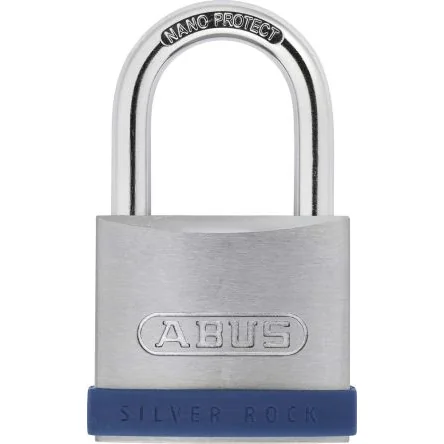 Solid and durable: The Silver Rock™ 5 is impressive, with its stable lock body made of zinc with a brushed stainless steel look and a Nano Protect™ bolt. The blue silicone frame makes the lock a real eye-catcher. Suitable for securing doors, gates, lockers, cupboards, tool boxes, basement windows, sheds, switch boxes or barriers With our Silver Rock™ 5, you can secure items of medium value or objects both inside and outside where there is an average risk of theft: Doors, gates, lockers, cupboards, tool boxes, basement windows, sheds, switch boxes or barriers and more. For this reason, our new padlock is not only suitable for commercial customers, but also for private customers such as workmen, industry or small garden plot holders, athletes and people who would like to feel totally secure about their basement or shed. For every use: The Silver Rock™ 5 is available in four practical sizes The Silver Rock™ 5 is available in four sizes, with a lock body width of 40 millimetres to 55 millimetres. It is therefore equipped for all possible uses at home, when you are on the move and for business!Security for items/goods of medium value or where there is an average risk of theft Suitable for securing doors, gates, cupboards, lockers, tool boxes, basement windows, sheds, switch boxes, cupboards, etc. Heavy zinc body with a brushed stainless steel ’solid body’ look Innovative silicone protective frame Precision 5-pin cylinder with paracentric key profile patent pending Nano Protect™ bolts, bolted twice Four standard sizes