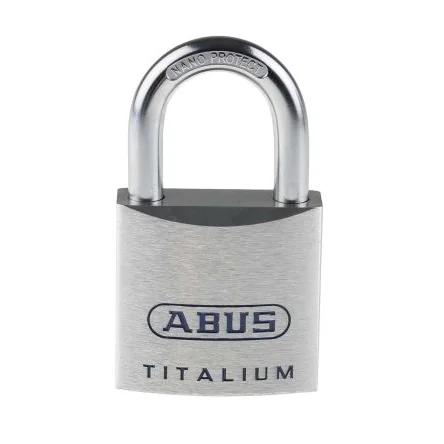 ABUS 80TI Series Titalium™ Padlocks. High quality TITALIUM™ body with stainless steel appearance: For corrosion resistance 6 Pin tumbler cylinder with anti-pick mushroom pins: Resists picking Through hardened steel alloy shackle: Resists saw attacks Rustfree internal components and chrome plated cylinder: Durable security Large tulip shaped keyhead: Convenient security Chrome plated cylinder core
