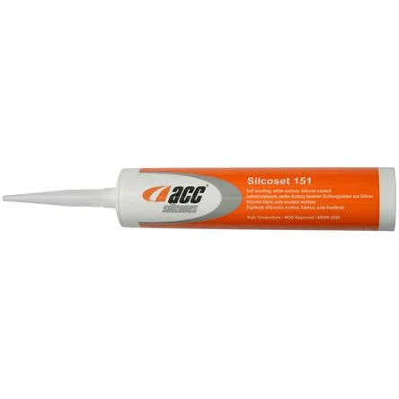 Silcoset 151 High-Temperature Silicone Adhesive Sealant. Silcoset 151 is a ready-to-use adhesive sealant, which reacts with atmospheric moisture to form a resilient rubber, which remains flexible over a very wide temperature range. 1-component RTV silicone adhesive sealant, high temperature Elastic at temperatures from -60 °C to +300 °C Good electrical insulation properties Resistant to, aging, weathering, ozone and UV radiation Resistant to solvents and chemicals Excellent bonding to a wide range of substrates