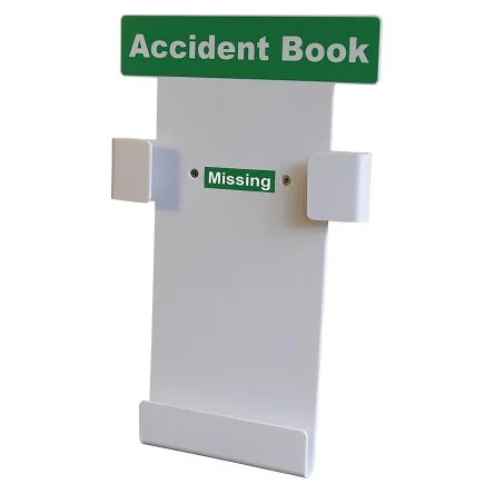 Wall Holder Only This wall mounted station ensures that the accident book is clearly visible at all time and is easy to access in case of an emergency. The station helps to overcome the frequent issue of Accidents Books being misplaced or not close to hand following an accident and therefore a record not being completed. We often recommend an Accident Book Station being mounted close to a First Aid Kit so that it is close by following an accident or incident.Ideal for storing accident books on wall bracket Ensure you comply, making sure your accident book is clearly visible and easy to access Suitable for use with A4 Accident Book (Not included)