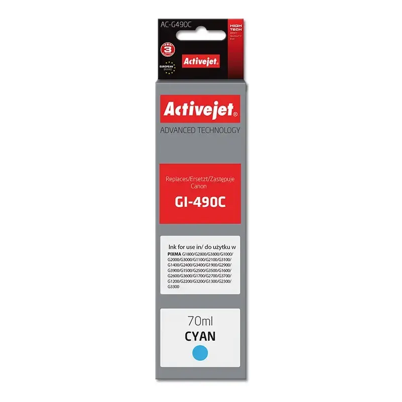 Activejet AC-G490C ink provides high-quality prints and is a perfect replacement for Canon printers.