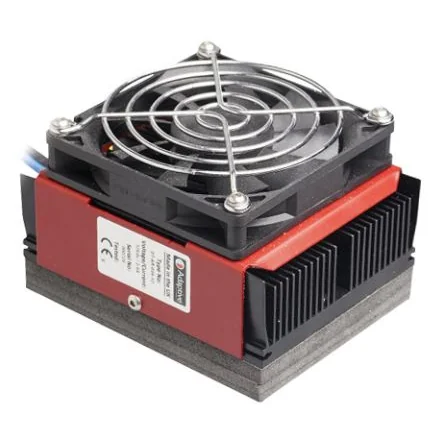 Adaptive Thermoelectric Cooling Assembly - Peltier Effect Heat Pump. Adaptive thermoelectric cooling assemblies are compact devices that can be used to cool down objects through convection (air-to-air) or conduction (direct-to-air). Reliable, compact design Intricate control over temperature DC operation High Coefficient of Performance (COP). With air-to-air assemblies, heat is pumped from one side of the thermoelectric assembly (i.e. cold side) by Peltier thermoelectric modules and dissipated from the other side of the assembly (i.e. hot side) to the environment through the use of bespoke heat sinks and highly efficient DC fans. With direct-to-air assemblies, the objects to be cooled down are mounted onto the metallic plate at the 'cold side' of the assembly from where heat is pumped by Peltier thermoelectric modules and dissipated to the environment through the use of bespoke heat sinks and highly efficient DC fans at the hot side.