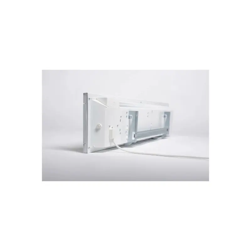 The emphasis on quality is reflected in the white tempered glass surface secured with four bolts and featuring a low surface temperature. Every little detail is carefully considered. Its sleek shape fits perfectly in modern interiors and is suitable for various premises, particularly due to ERP compliance, which allows for safe heating. The IP24 standard (splash-proof) allows it to be installed in both ordinary residential or commercial premises as well as in humid areas like a bathroom and laundry room. The digital thermostat has an accuracy of ± 0.3°C and helps maintain a certain temperature when you are at home. This temperature accuracy is an essential condition for comfort and energy savings. This radiator heats the room quickly and efficiently; its installation is easy with the included mounting bracket. Installed in the radiator, the X-shaped aluminium heating element does not burn oxygen or dust.