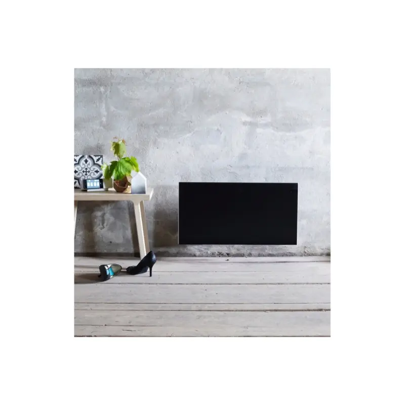 ThisADAX electric radiator - Black - 800 W - 704x370x90mm - Neo Basic NP08 KDT combines the quality of a heater designed for the needs of Nordic countries with a contemporary and timeless Scandinavian design. This Norwegian brand has created products designed to meet all needs. The bright LED display at the front not only enhances the visual appeal of the radiator but also allows for easy programming and checking of the selected temperature. The digital thermostat has an accuracy of ± 0.3°C. It helps maintain a comfortable temperature when you are at home and is economical when you are out. This temperature accuracy is an essential condition for comfort and energy savings. This Neo Basic radiator heats the room quickly and efficiently, and its installation is easy with the included mounting bracket. Installed in the radiator, the X-shaped aluminium heating element does not burn oxygen or dust.