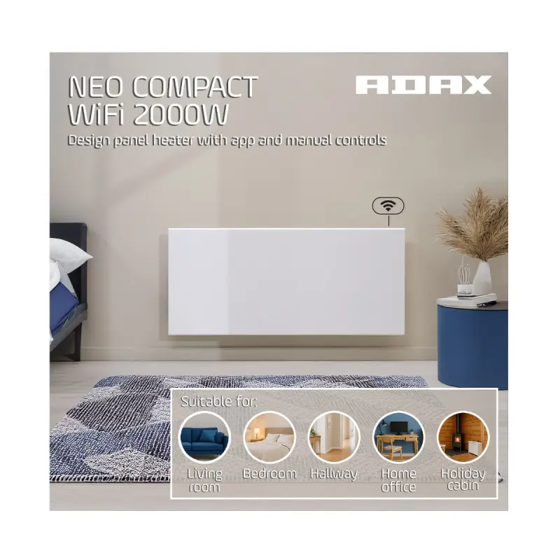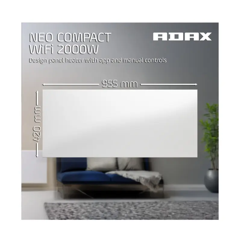 Compact electric radiator ADAX Wi-Fi - White - 2000 W - 95.5 x 42 x 9 cm - NEO COMPACT 20 KWT Delivery in the original packaging