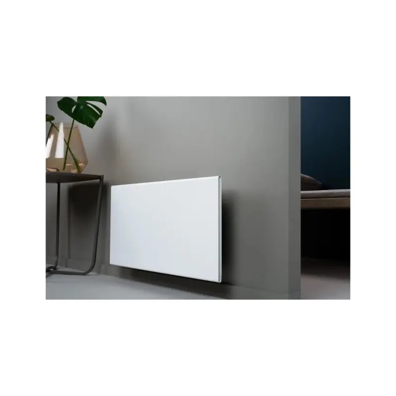 The ADAX Wi-Fi Connected Electric Radiator - White - 800 W - NEO H 08 KWT features an elegant design with a panel that will blend beautifully into your interior. Thanks to its built-in Wi-Fi thermostat, you can adjust the temperature from your smartphone via the Adax Wi-Fi app whether you are at home, at the office, or even in your chalet. In case of Wi-Fi loss, it is of course possible to adjust the thermostat in a traditional manner. It is more suitable for rooms of 10 m² with dimensions of 75 x 33 x 8.7 cm (W x H x D). Its IP24 design makes it splash-resistant for installation in a bathroom, with double insulation and overheating protection. This radiator has been manufactured with 100% sustainable electricity and also complies with the Ecodesign 2018 regulations for optimal energy performance. The Neo range brings together the best-sellers of the Adax brand thanks to its timeless design and features.
