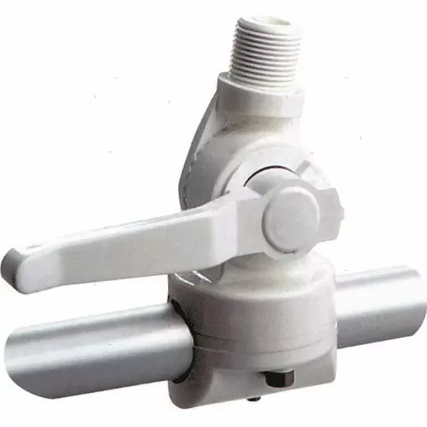 Antenna clamp base made of reinforced Nylon, for the installation of antennas on tubular and handrails.