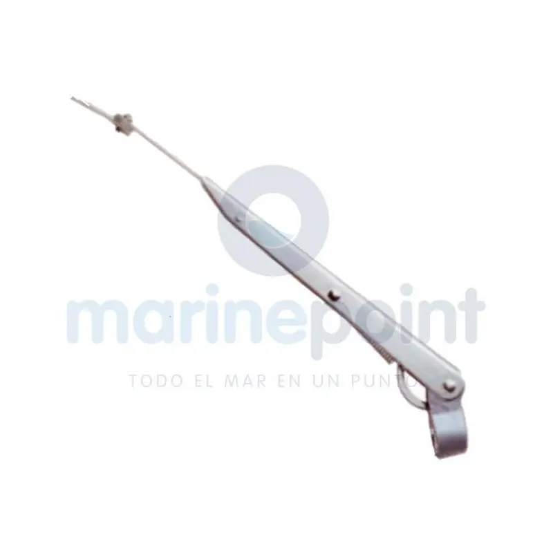 The adjustable windshield wiper arm has been developed to offer flexibility and durability in marine environments. Its adjustment range from 356 to 508mm allows adaptation to different windshields, providing effective cleaning regardless of boat model.