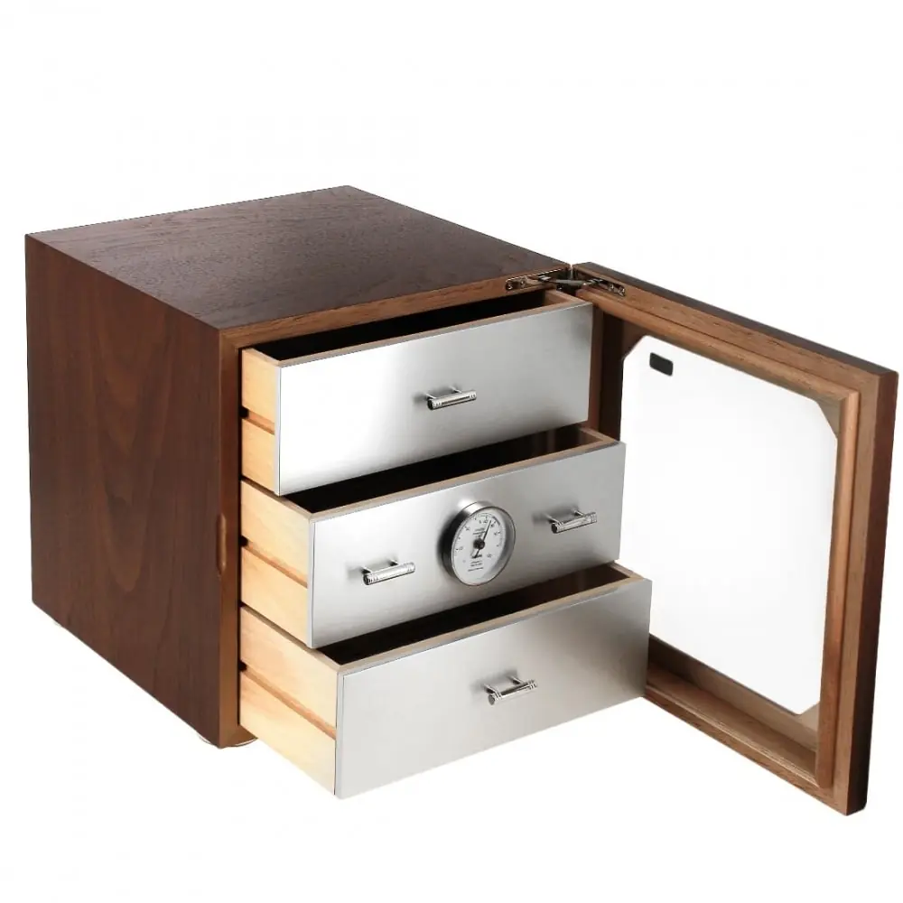 Store up to 100 cigars in style with the Adorini Chianti M Deluxe Humidor, featuring a luxurious walnut finish.