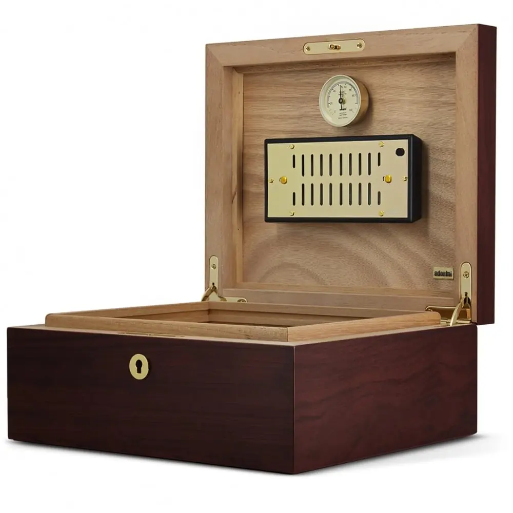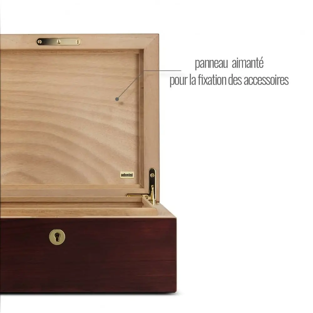 - 1 Adorini luxury humidifier: interior in new generation acrylic polymer crystals which allows self-regulation of the level of humidity and faster adjustment. It is equipped with an adjustable opening allowing the humidity level to be fine-tuned and is fixed by magnetizing itself under the lid of the cellar thanks to an invisible metal plate.