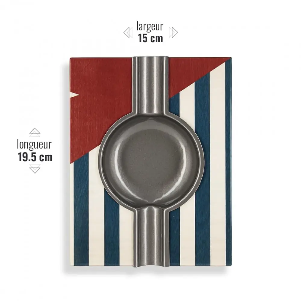 Inspired by the Cuban flag with a high-end lacquered finish. Non-removable metal insert and two large cigar rests to accommodate all sizes. Velvet pad to protect surfaces.