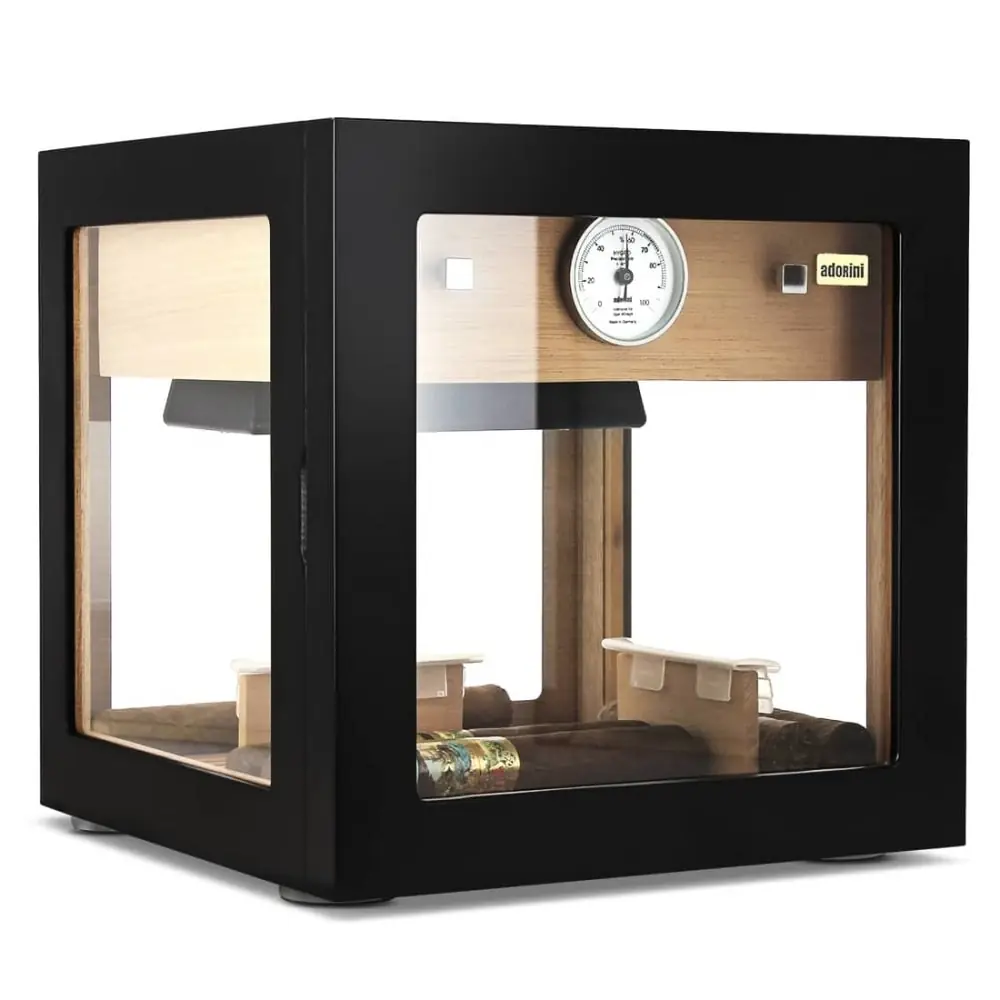 aesthetic adorini cigar humidor and impeccable finishes. able to contain a hundred cigars you can in particular separate them via the drawer (which can contain around thirty modules) and via two separators provided. adorini hair hygrometer and humidifier are also included!