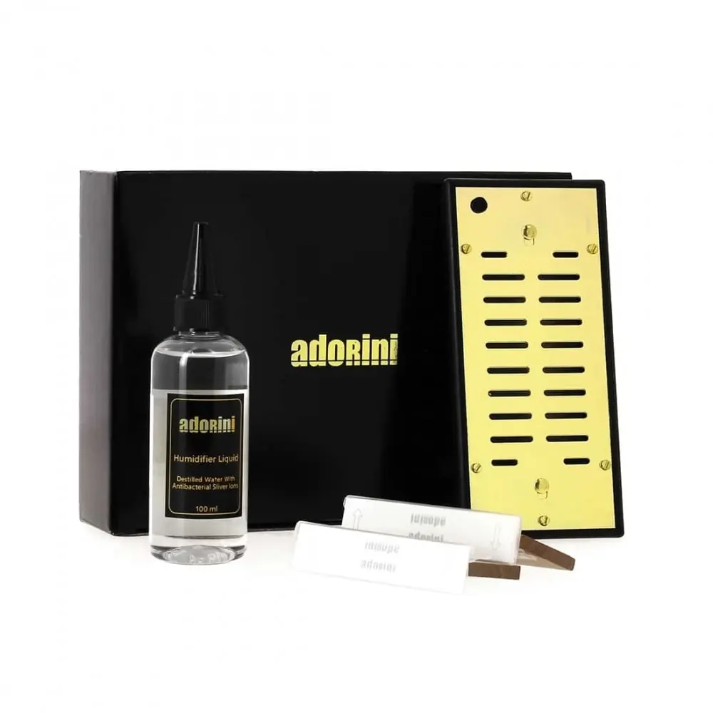 - 1 adorini luxury humidifier: interior in new generation acrylic polymer crystals which allows self-regulation of the level of humidity and faster adjustment. it is equipped with an adjustable opening allowing the humidity level to be fine-tuned and is fixed by magnetizing itself under the lid of the cellar thanks to an invisible metal plate.