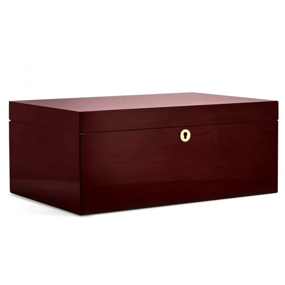 Simple can accommodate up to 150 cigars. Beautiful finishes, quality wood and cherry veneer - the summary of a quality cigar humidor. A great value for money.