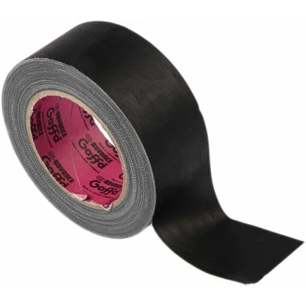Durable black matt gaffa tape with clean peel adhesive, perfect for cable management and more.