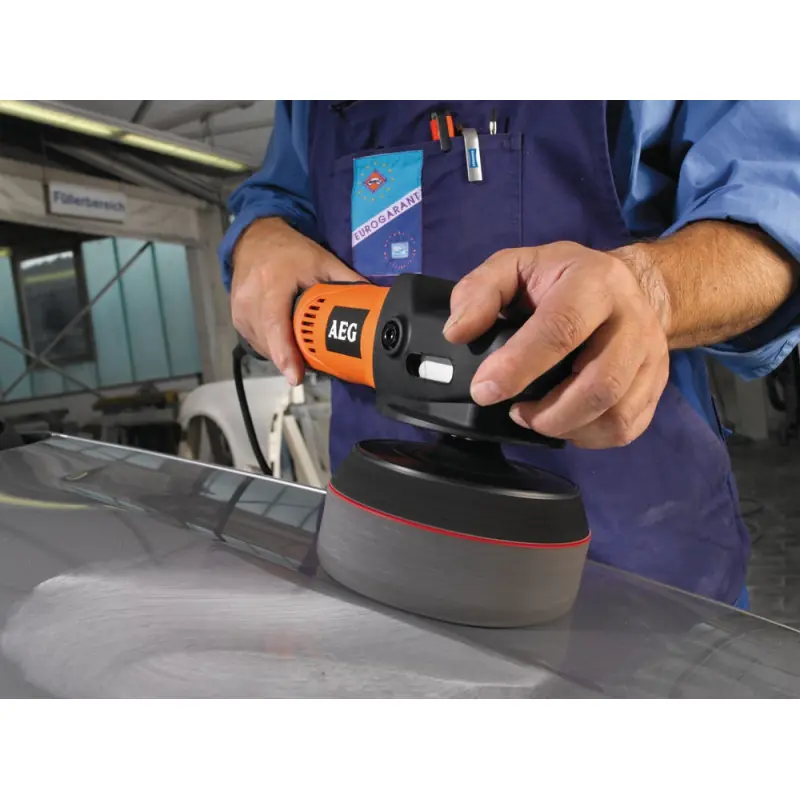 AEG 1200W 150mm Electric Polisher PE 150 with an ergonomic shape designed for a two-handed grip, making it perfect for intensive work tasks. This polisher features optimised torque and speeds for polishing jobs.