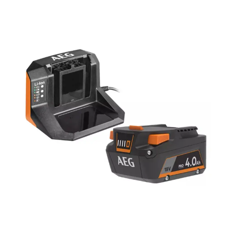 The AEG 18V 4.0Ah Prolithium-ion battery pack - Charger - SETL1840S is the ideal solution for professionals and passionate DIYers looking for optimal autonomy and performance. Designed to meet the demands of modern power tools, this pack offers reliable power and extended life, allowing you to work longer without interruption. Thanks to its Prolithium-ion technology, this 4.0Ah battery ensures fast charging and slow discharge, resulting in increased efficiency during your DIY or gardening projects.