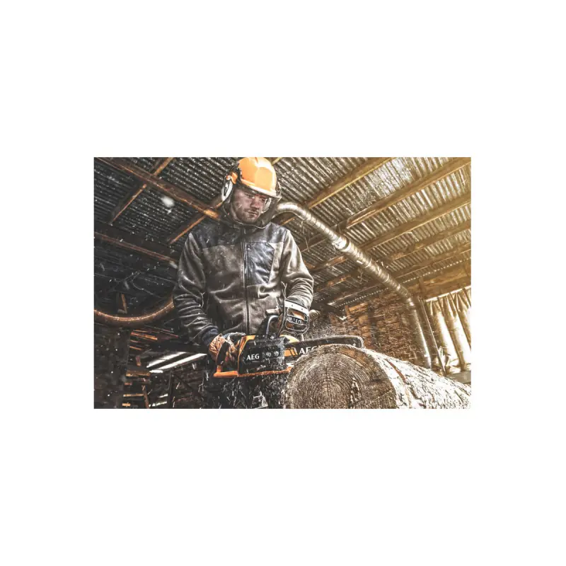 AEG 18V Pack - Brushless Chainsaw - 4.0 Ah Battery - Charger with its high-performance Brushless technology, it features a 30cm chain and a mechanical chain brake for added safety.